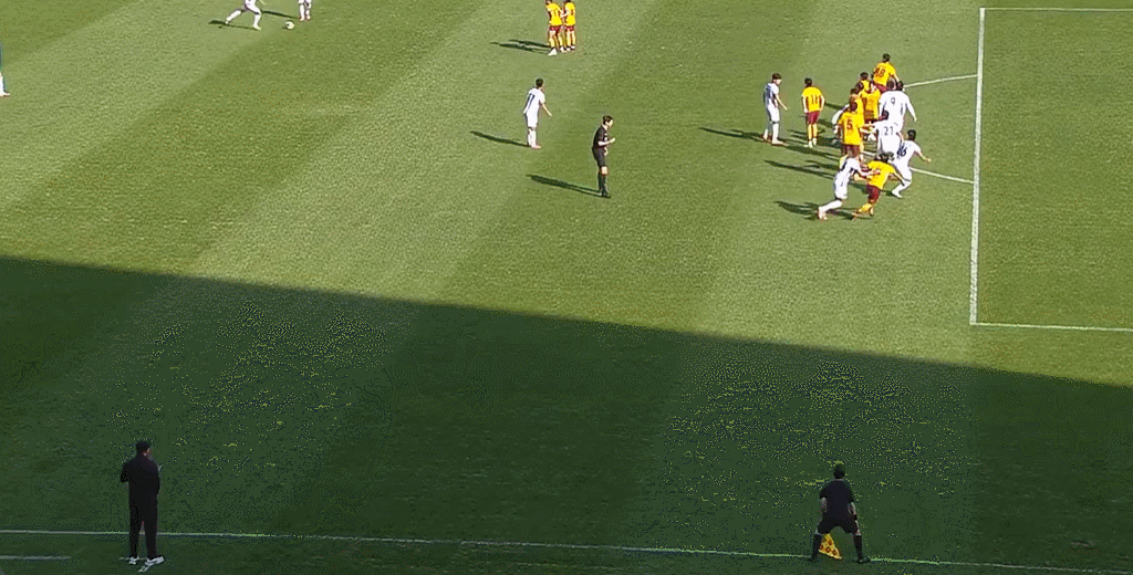 45' Ли Чанлун заблокировал удар и попал в ворота с Рейсом, мяч слегка не попал в штангу и чуть не забил автогол