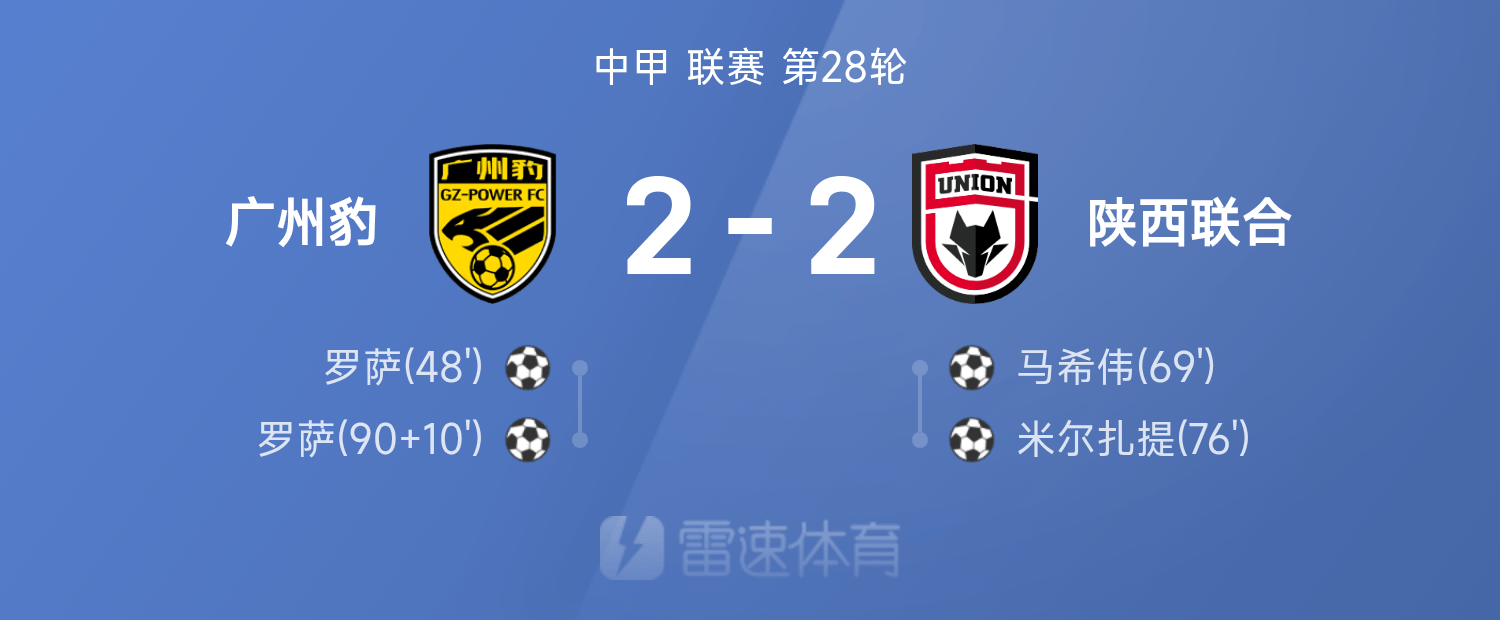 6686 Sports 26 октября В 28-м туре 25-й китайской лиги «Гуанчжоу Леопардс» сыграли вничью 2–2 с «Шэньси Юнайтед». За всю игру Роза забила дважды, а Ма Сивэй и Мирзати отличились.