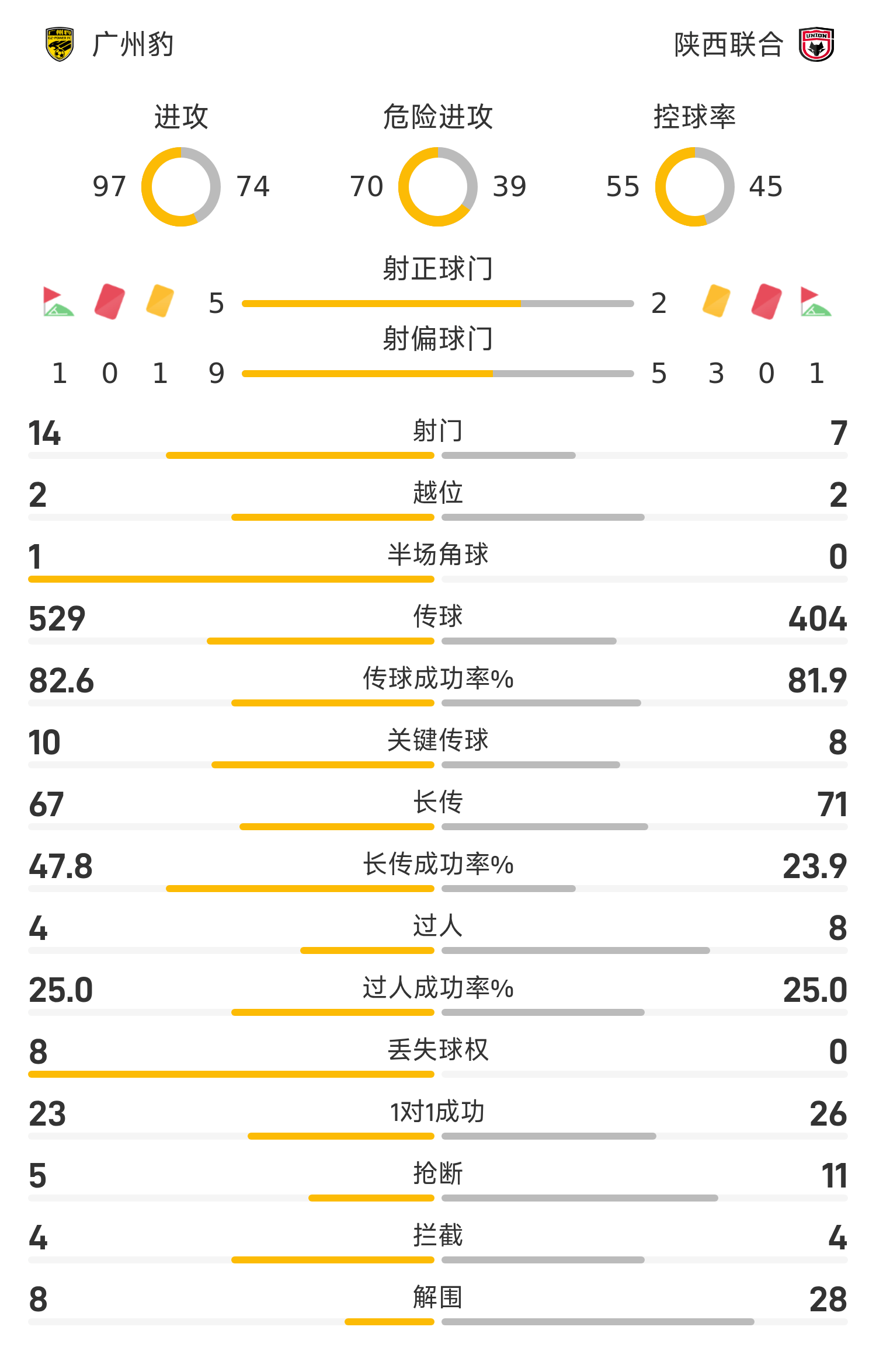 Стартовый состав Guangzhou Leopards: 22-Сяо Цзяци, 5-Цзян Цзихун, 3-Хань Сюань, 15-Дэн Бяо (81’42-Ян Хао), 37-Шан Инь (73’14-Цзэн Чао), 25-Ван Цзяньмин, 8-Цай Хаочан (46’7-Карлос), 6-Дуань Юньцзы (90’1) 7-Янь Цзихао), 11-Никон, 20-Роза, 9-Ся Далун (73’10-Лян Сюэмин)
