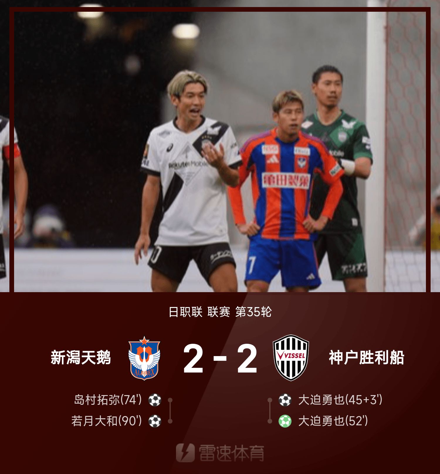 Отчет о матче японской профессиональной лиги: Ямато Вакадзуки — спаситель резервной команды, Ниигата сыграла вничью с Кобе 2–2