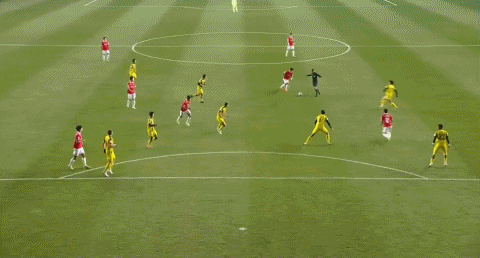 23' Цзинь Дунцзин нанес удар с внешней стороны, прошел по дуге внешнего подъема, и мяч не попал в левую часть ворот.