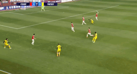 19’ сбивает гору и трясет тигра! Штрафной удар Цзинь Дунцзина попал прямо в ворота, но Бухари потянулся и нырнул, чтобы спасти мяч.