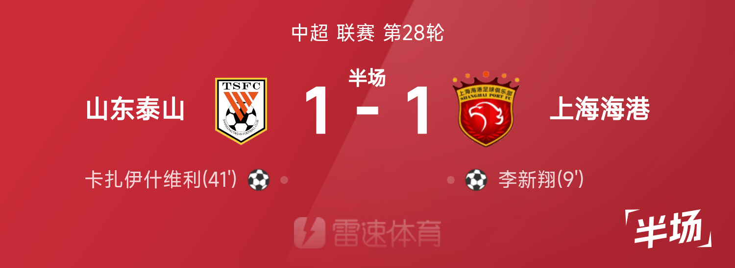 Перерыв в Суперлиге Китая: Ли Синьсян забил, Каза сравнял счет, Тайшань временно 1:1 Хайган