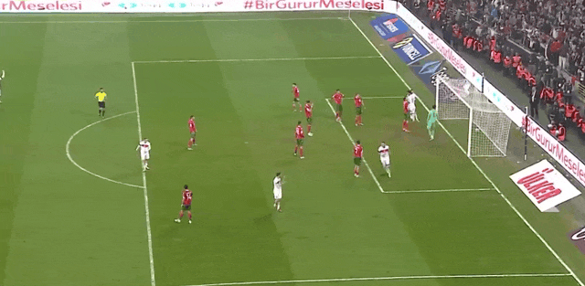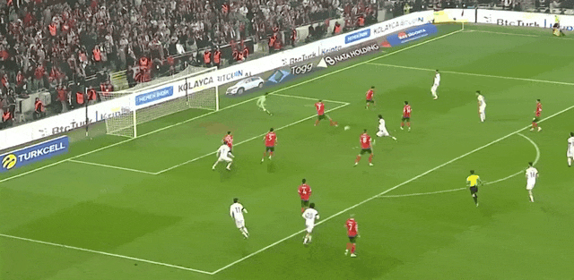 56' Айдын сделал пас справа в штрафную, а Актукоглу головой пробил над головой. перекладина