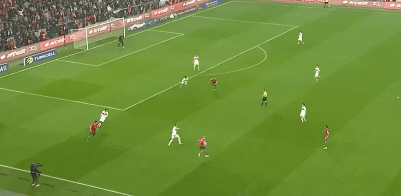 12’ Йылдыз слева прорвался в штрафную, и Актукоглу низом пробил мимо ворот