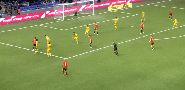 61'Арип нанес удар в свои ворота, а Анабеков сделал отличный сейв и заблокировал мяч