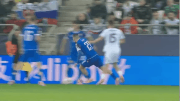 45' Шкриньяр сильно ударил с лета в трехсекундной зоне и отбил мяч прямо высоко.