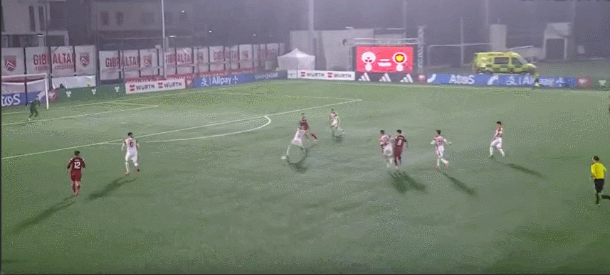 Запасной состав Гибралтара: 1-Банда, 13-Лопес, 17- Оливеро, 21-Мулси, 18-Маклафферти, 9-Дель Рио, 20-Винай, 15-Бент, 16-Перейра, 10-К. Морган, 11-Ричардс, 7-Барто Лос-Анджелес