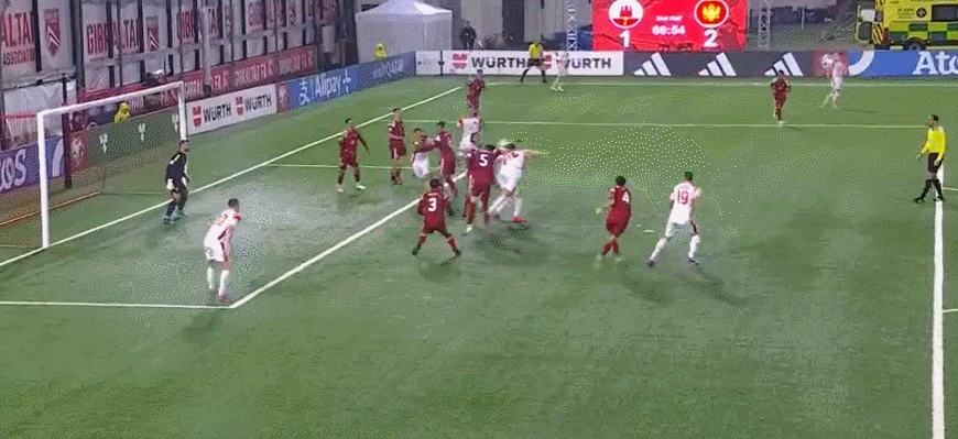 67' Костович встретил мяч перед воротами, развернулся, провел ведение и залп, мяч прошел через перекладину и вылетел за лицевую линию