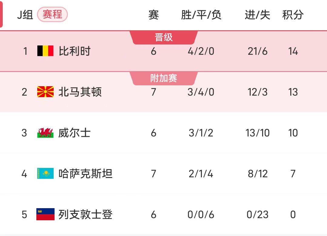 Сегодня вечером группа J проведет первую игру. Бельгия, лидер группы, отправится в гости, чтобы бросить вызов Казахстану. Если Бельгия, у которой в этой игре на одну игру меньше, сможет вернуть 3 очка, то она опередит идущую на втором месте Северную Македонию на 4 очка и выйдет в основную игру чемпионата мира на один тур раньше графика.