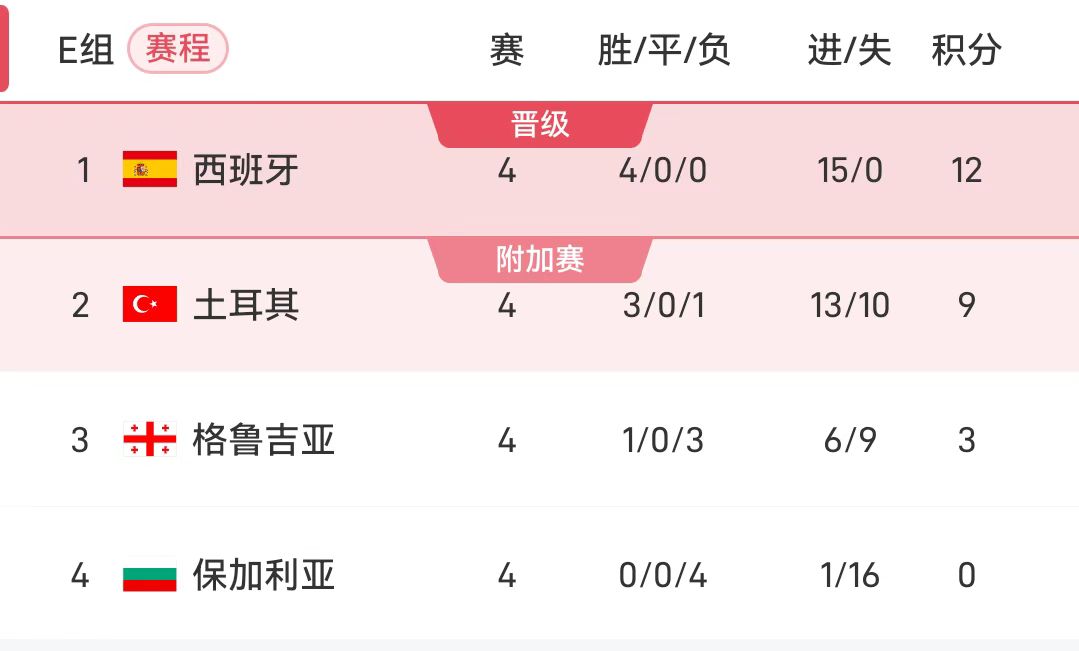 В последующих соревнованиях группы E Испания встретится с Грузией, а Турция встретится с Грузией. Испания, которая на данный момент лидирует с отрывом в 3 очка, выйдет за США, Канаду и Мексику на один раунд раньше запланированного срока, если выиграет этот раунд, а Турция не сможет набрать все три очка.