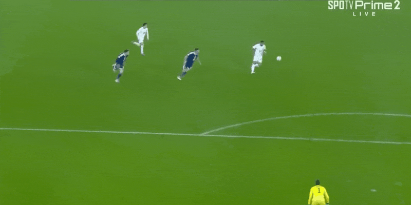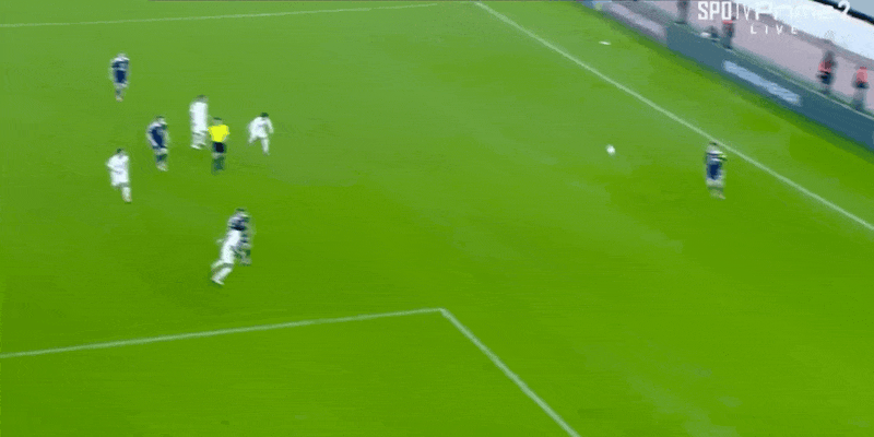 45+1’ — это всего лишь на волосок! Мактоминей вышел вперед и пробил по воротам, мяч попал в перекладину и вылетел наружу.