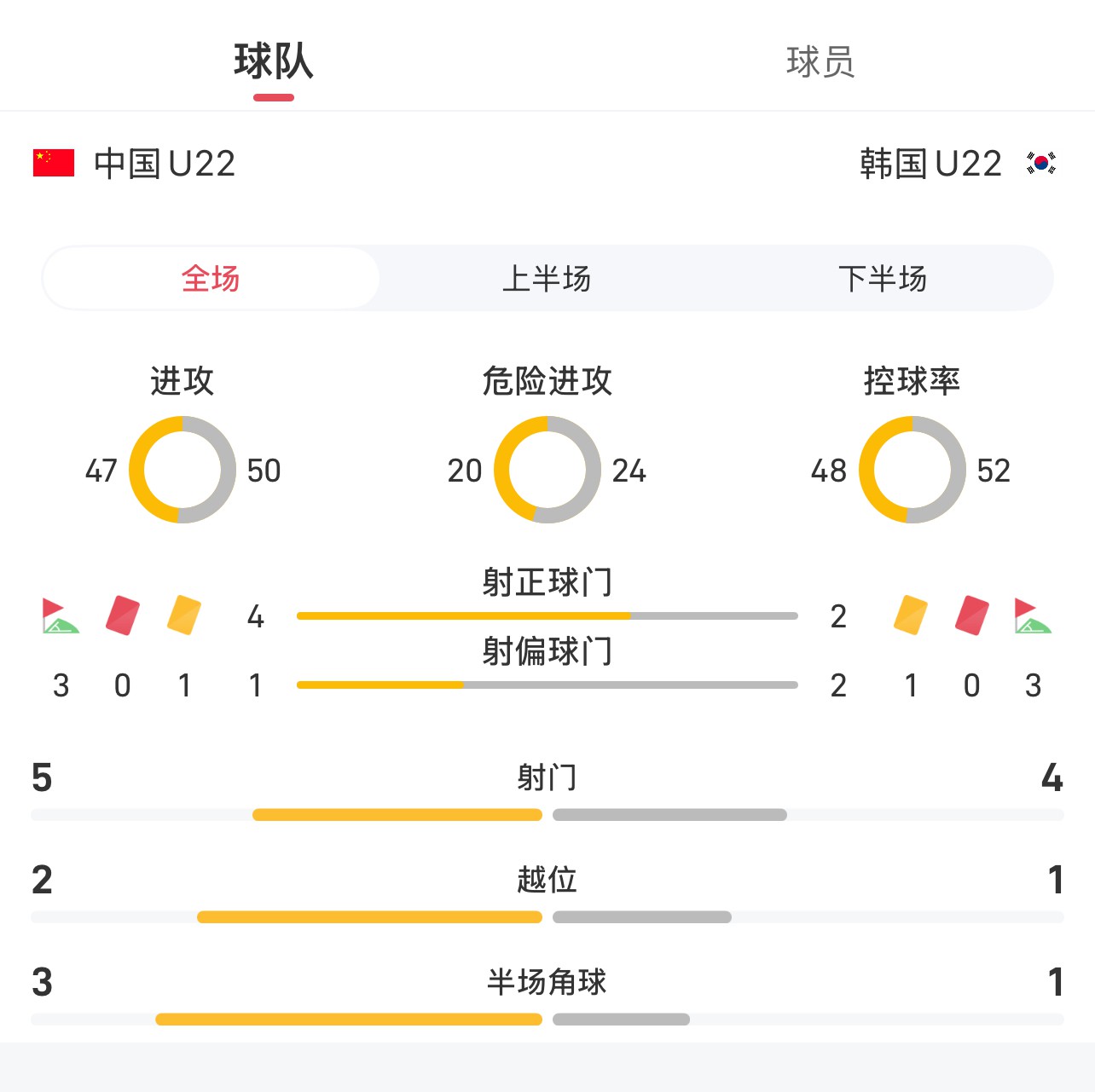 Китай U22 против Южной Кореи Полная статистика игры U22: