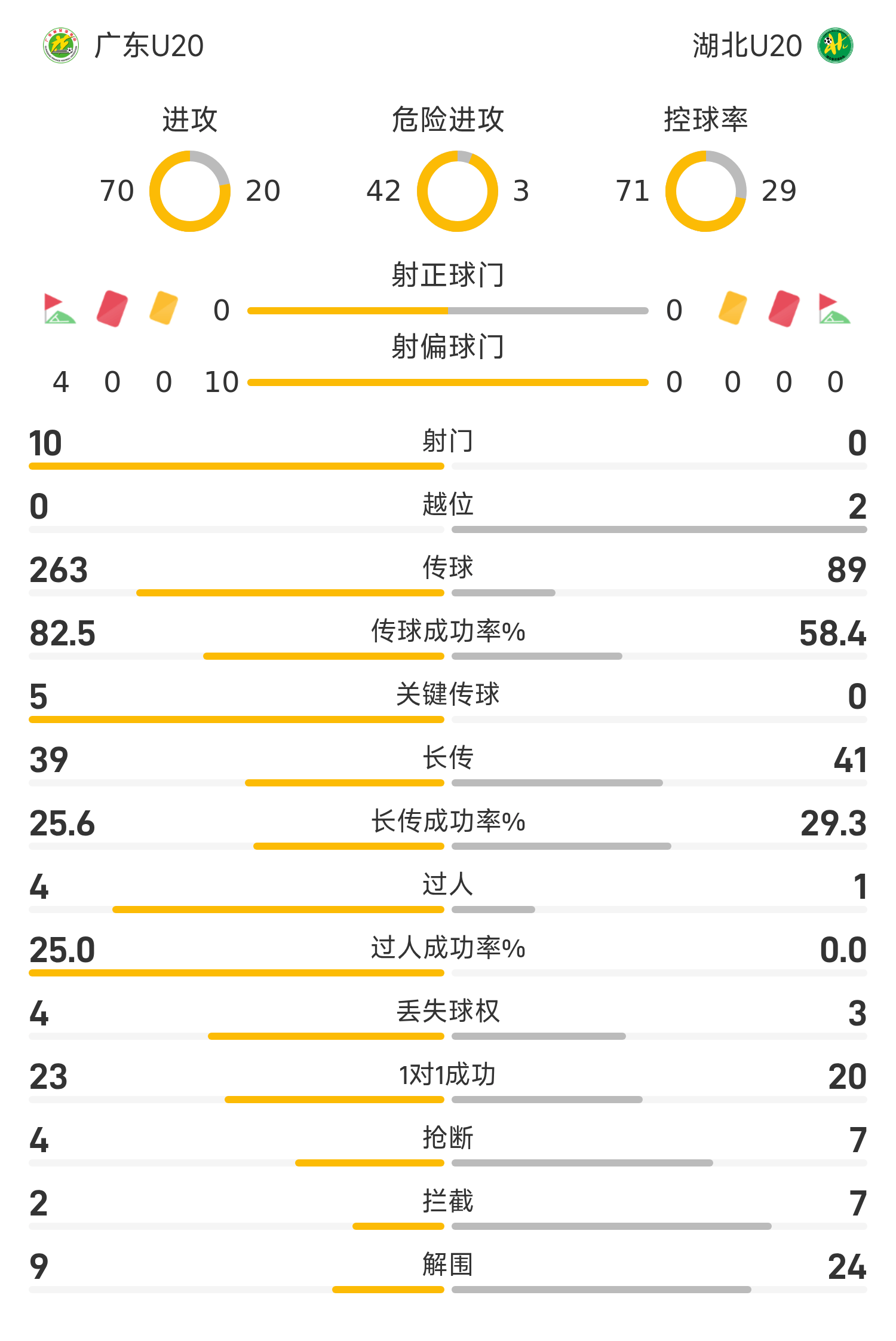 Стартовый состав Хубэй U20: 1 - Яо Хаоян, 34 - Ван Кан, 11 - Вэй Суовэй, 5 - Ю Тяньлэ, 2 - Сунь Канбо, 16 - Ян Си, 6 - Ся Цзихао, 10 - Фань Сюлин, 18 - Сюн Цзичжэн, 15-Цзян Лисюнь, 13-Хуан Кайцзюнь