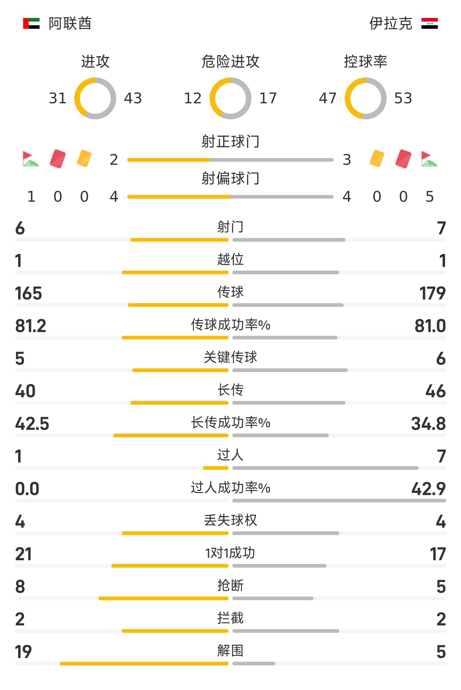 Стартовый состав ОАЭ: 17-Исса, 2-Амарал, 5-Зухир, 16-Мелони, 3-Пимента, 14-Хименес, 20-Луан, 6-Рамадан, 15- Надер, 23-Адил, 9-Сухаил