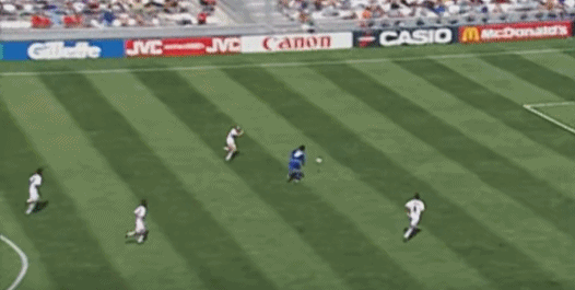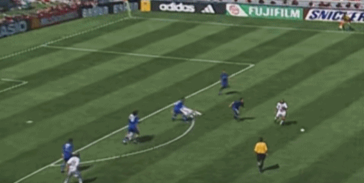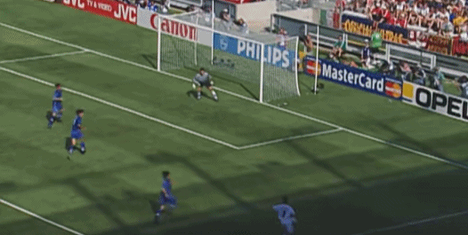 Впоследствии Дель Пьеро принял мяч слева, раскачивался влево и вправо и, наконец, наступил на мяч и упал на землю.