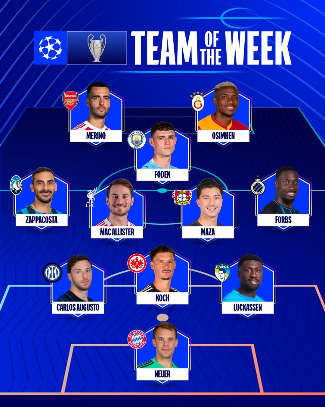 6686 Sports News 7 ноября УЕФА официально объявил команду недели четвертого тура лиги. Список возглавляют Осимхен и Нойер, в него входят Фоден, Макаллистер и Мерино.