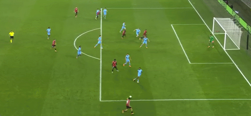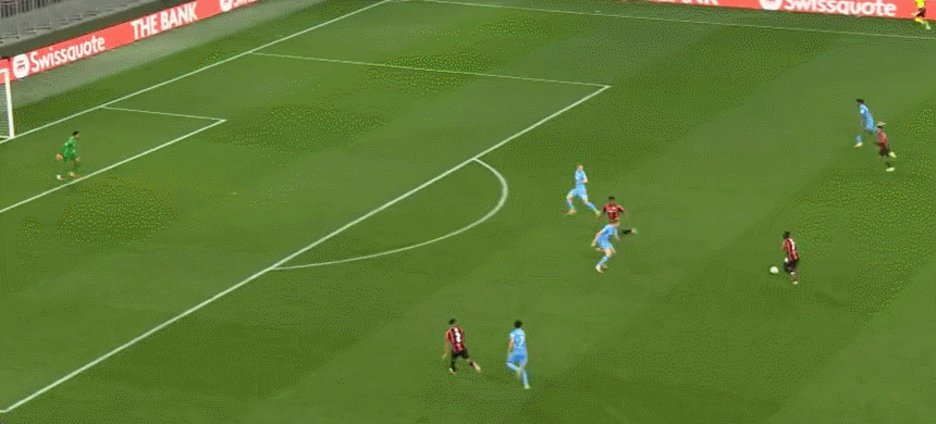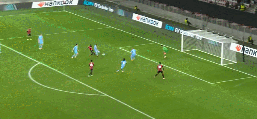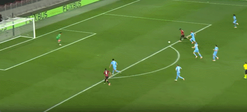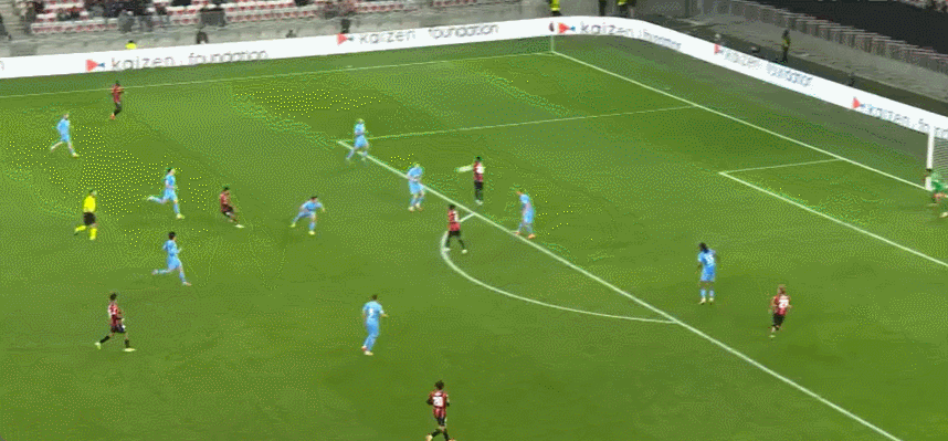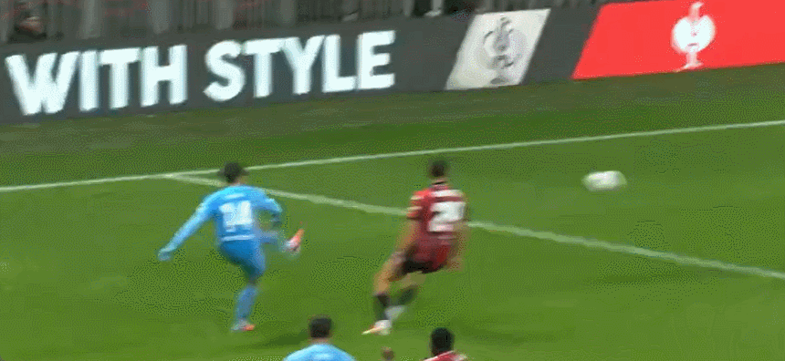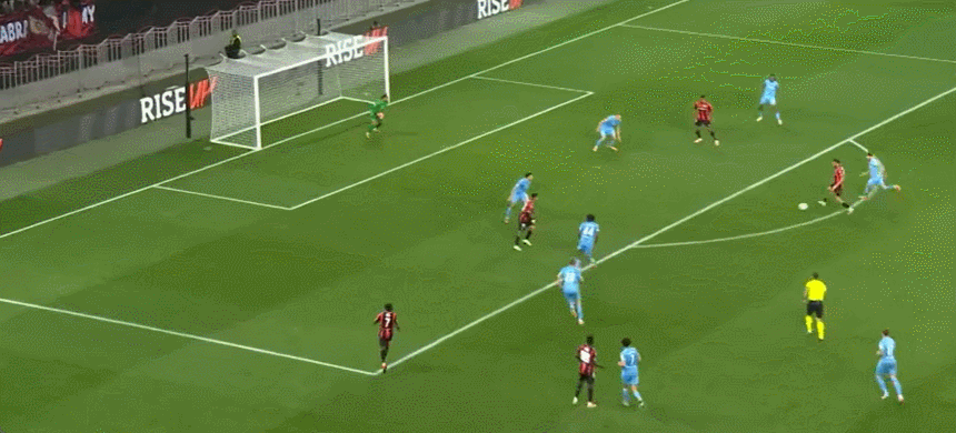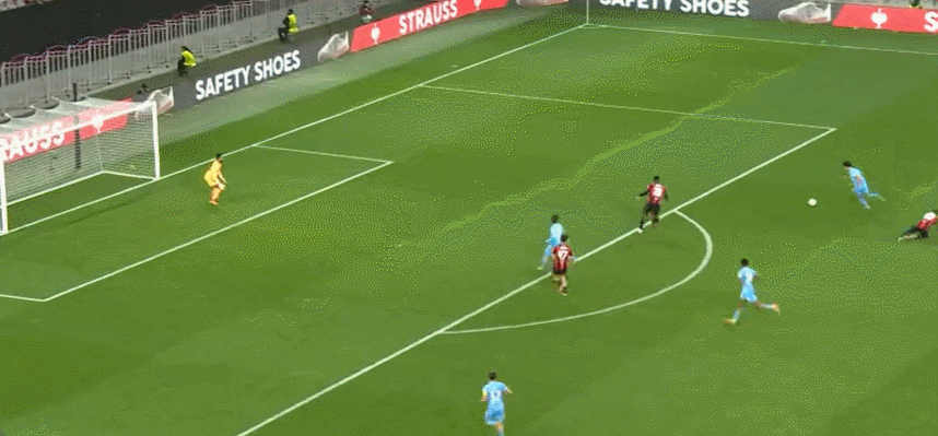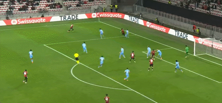 63' Ницца осадил соперника, Говия навесом попал в перекладину, а Самед пробил чуть выше перекладины