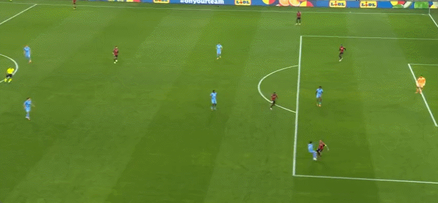 77' Будуве получил мяч за пределами трехсекундной зоны и тут же пробил из-за пределов. Мяч пересек перекладину и вылетел за лицевую линию