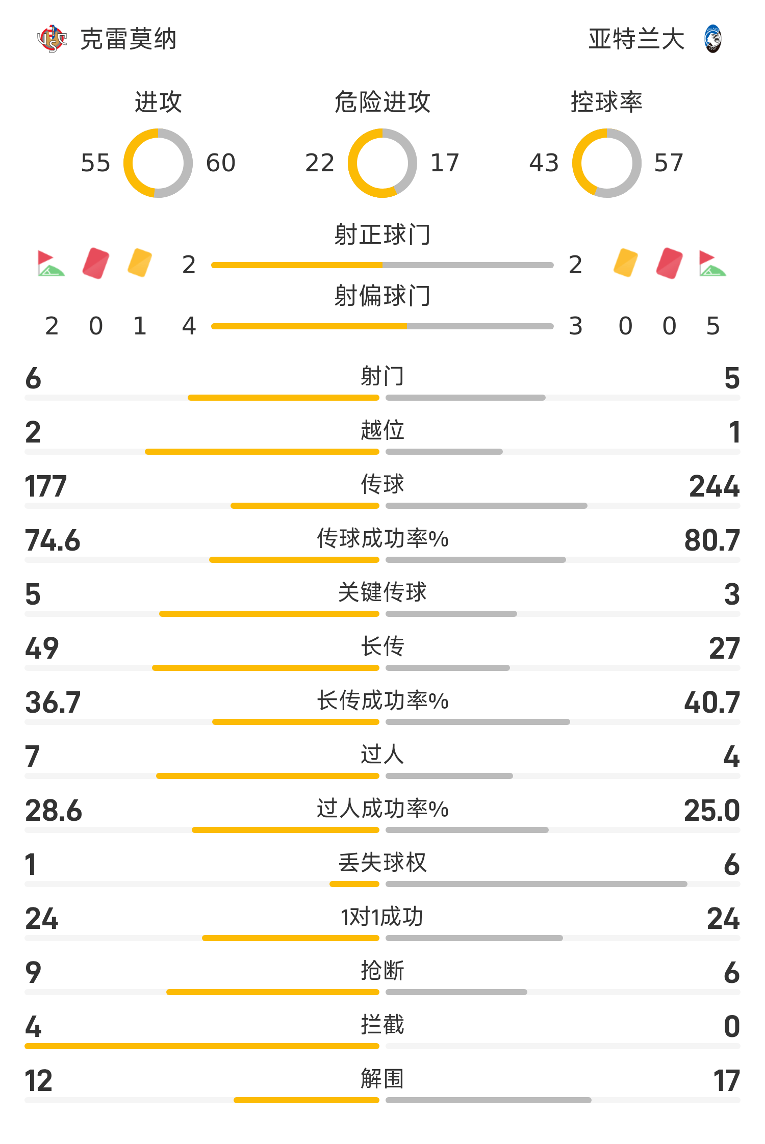 45'De Кетраре головой направил мяч к воротам, и вратарь Кремоны отобрал мяч.