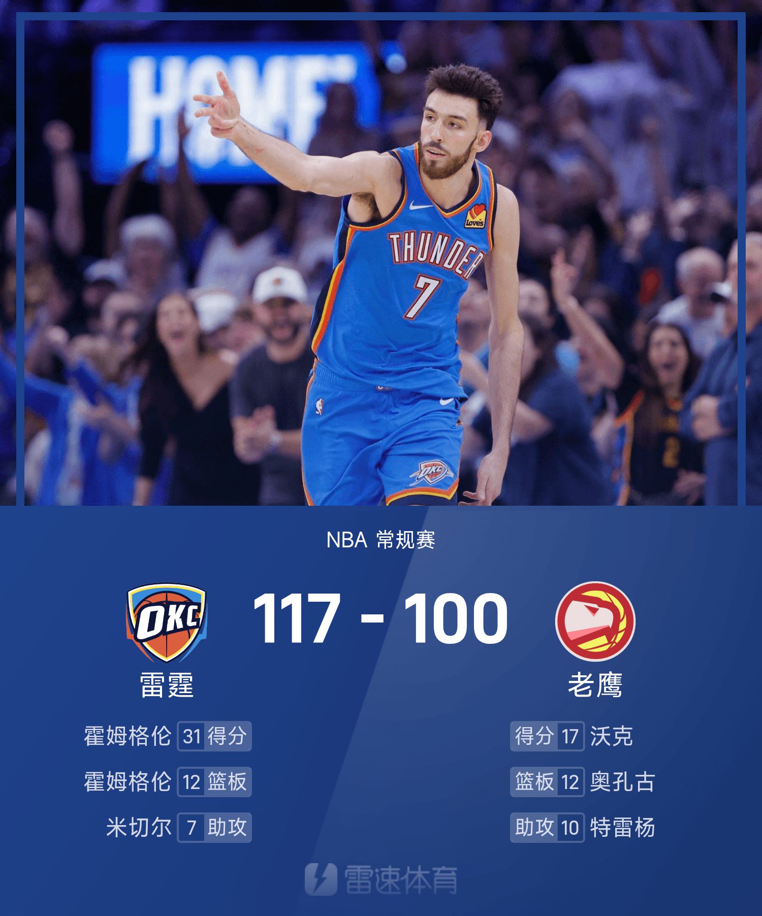 Отчет НБА: Холмгрен 31 очко и 12 подборов, Тандер обыграл Хокс со счетом 117-99