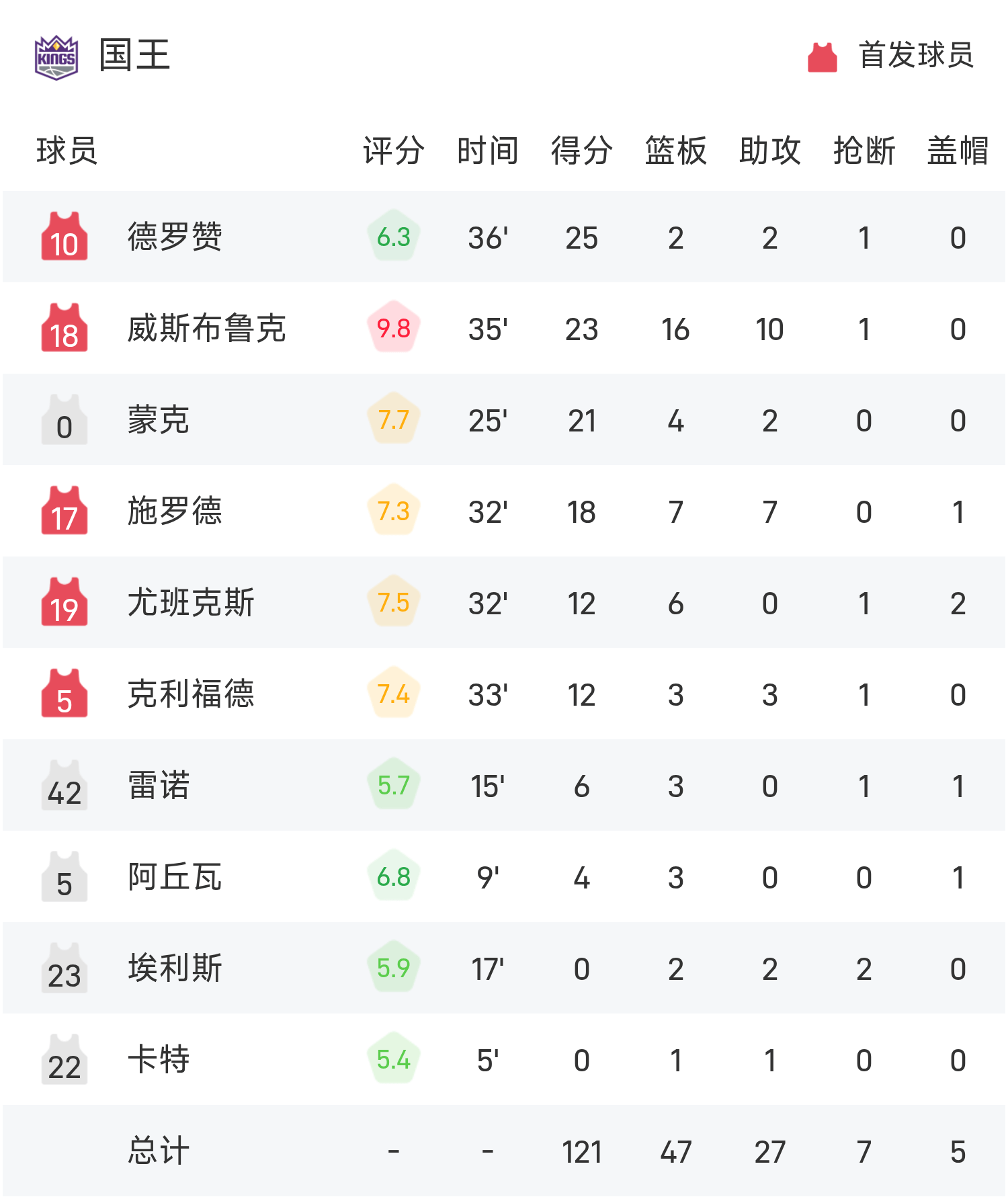 ДеРозан набрал 25 очков, 2 подбора и 2 передачи и привел команду к победе. Ричард набрал рекордные для игры 30 очков, 7 подборов и 3 передачи.