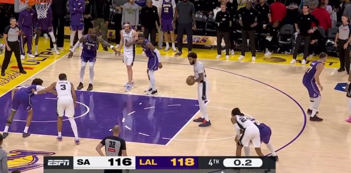 В конце игры «Лейкерс» с небольшим перевесом обыграли «Шпоры» со счетом 118–116.