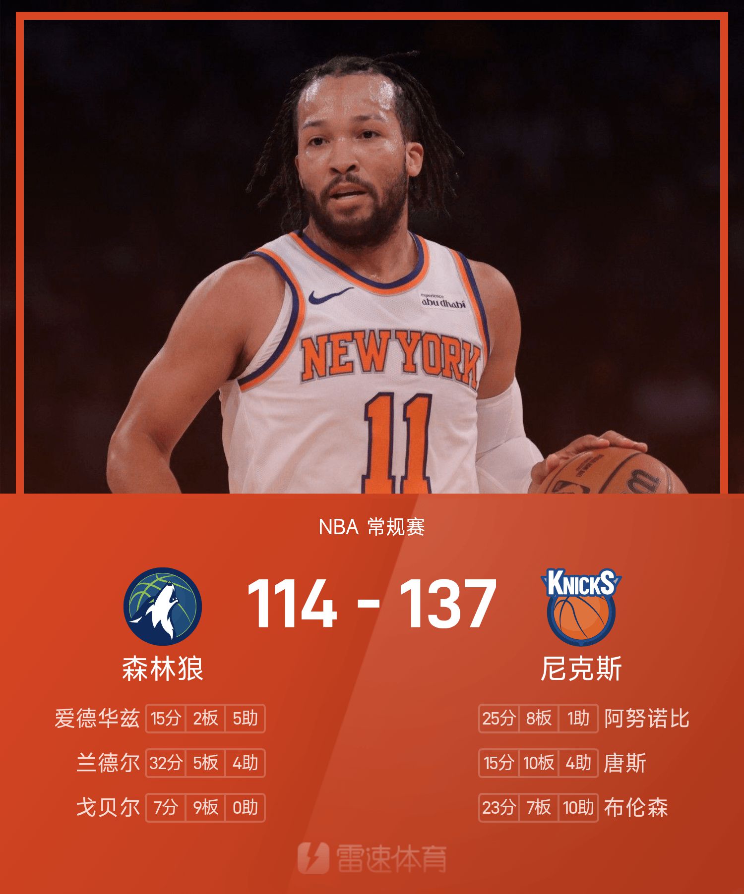 Брансон набрал 23 очка, 7 подборов и 10 передач, а Рэндалл набрал 32 очка.