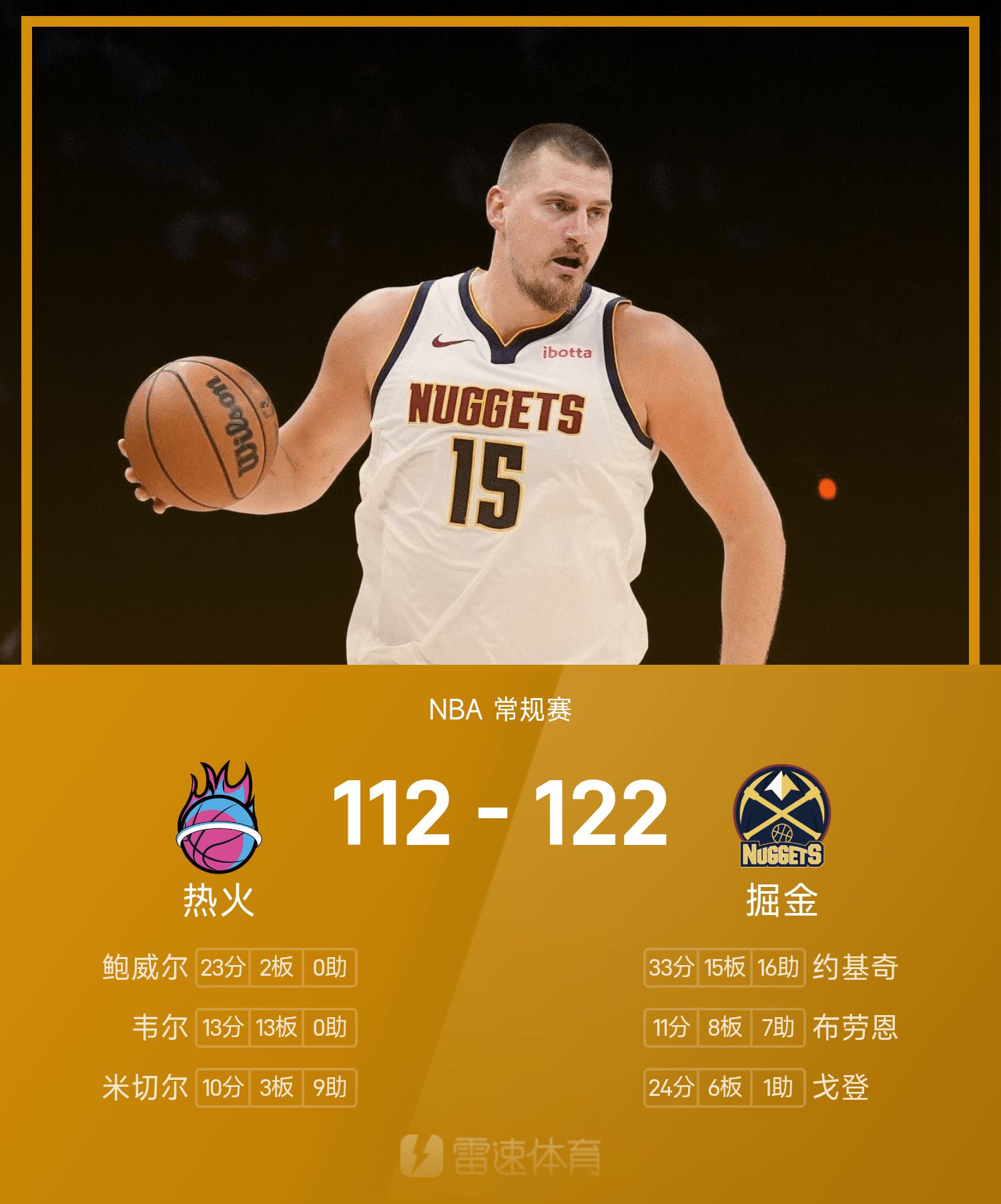 Йокич набрал 33 очка, 15 подборов и 16 передач при 12 из 18 бросков, заработав свой пятый трипл-дабл в этом сезоне.