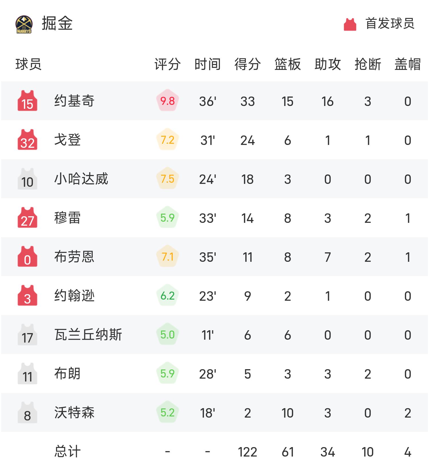 Йокич набрал рекордные для игры 33 очка, 15 подборов и 16 передач, что привело «Наггетс» к победе.