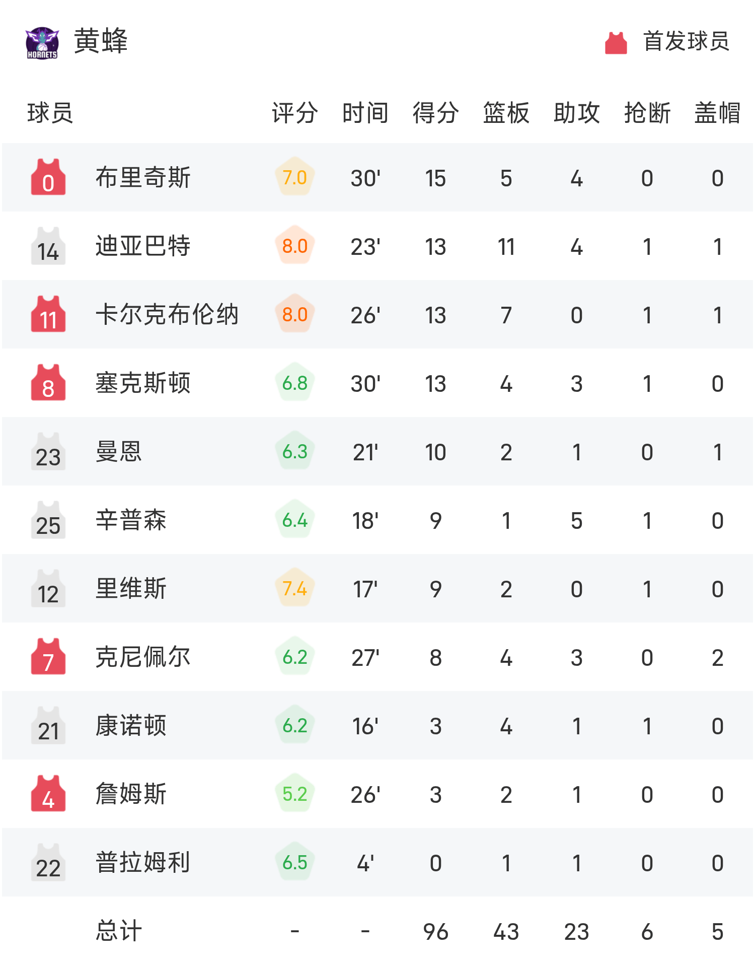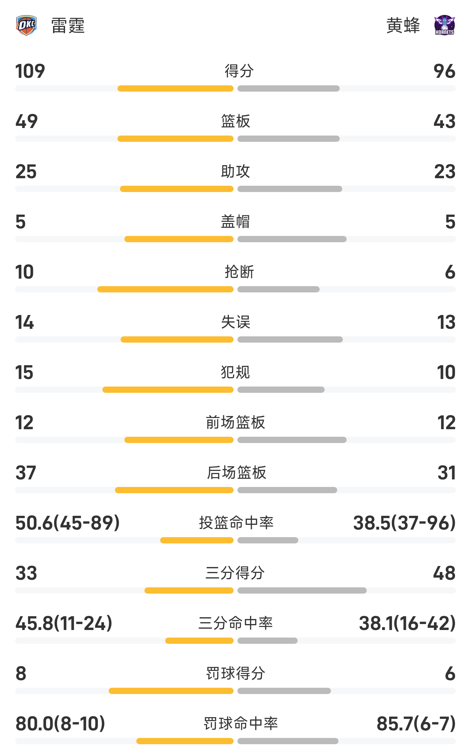 В конце игры «Хорнетс» проиграли «Тандер» со счетом 96–109.
