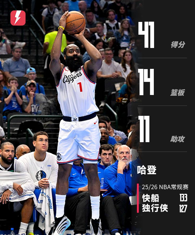 Звезда «Клипперс» Харден сыграл в этой игре 51 минуту и 03 секунды и сделал 13 из 25 бросков, в том числе 6 из 12 трехочковых и 9 из 11 штрафных. Он набрал 41 очко, 13 подборов, 11 передач, 1 перехват и 2 блок-шота.