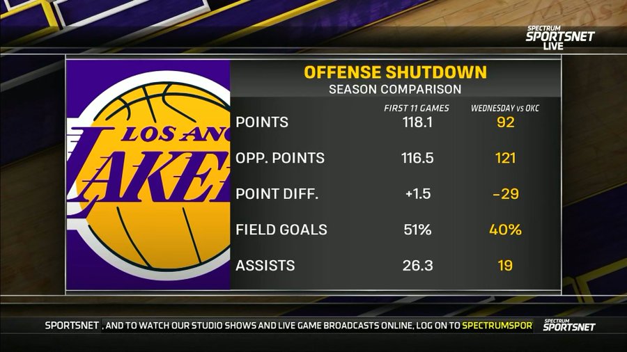 После игры американские телеканалы сравнили данные «Лейкерс» за эту игру с данными за первые 11 игр сезона. Все данные упали по всем направлениям.