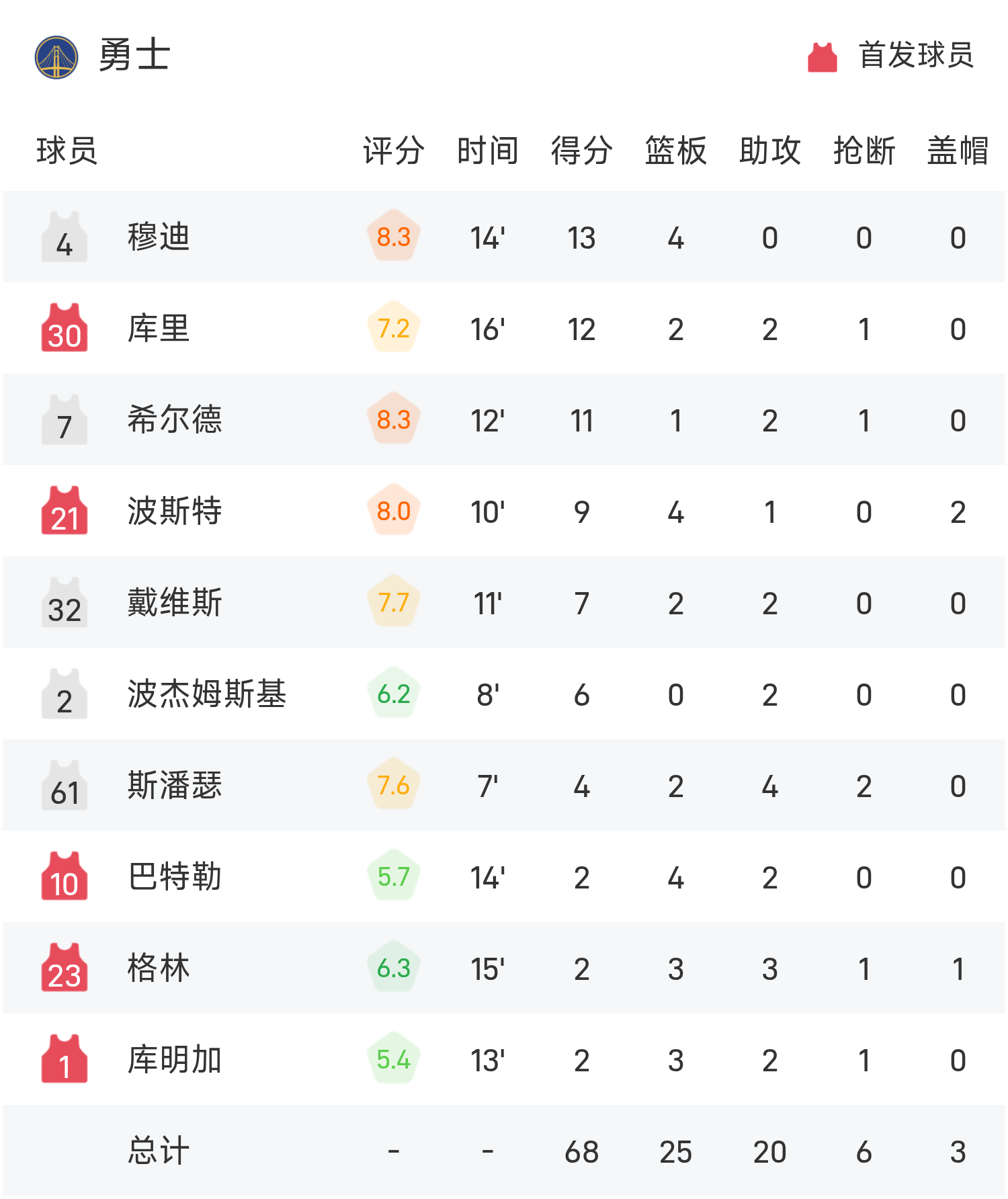 Перерыв в НБА: Муди набрал 13 очков, Уорриорз - 10 очков, а Уорриорз возглавили Санз со счетом 68-49.