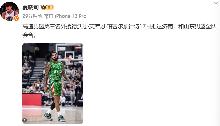 Оригинальный текст из социальных сетей: «Третий иностранный помощник мужской баскетбольной команды Шаньдуна, Девон Айкун Перселл, как ожидается, прибудет в Цзинань 17-го числа и присоединится к мужской баскетбольной команде Шаньдуна».