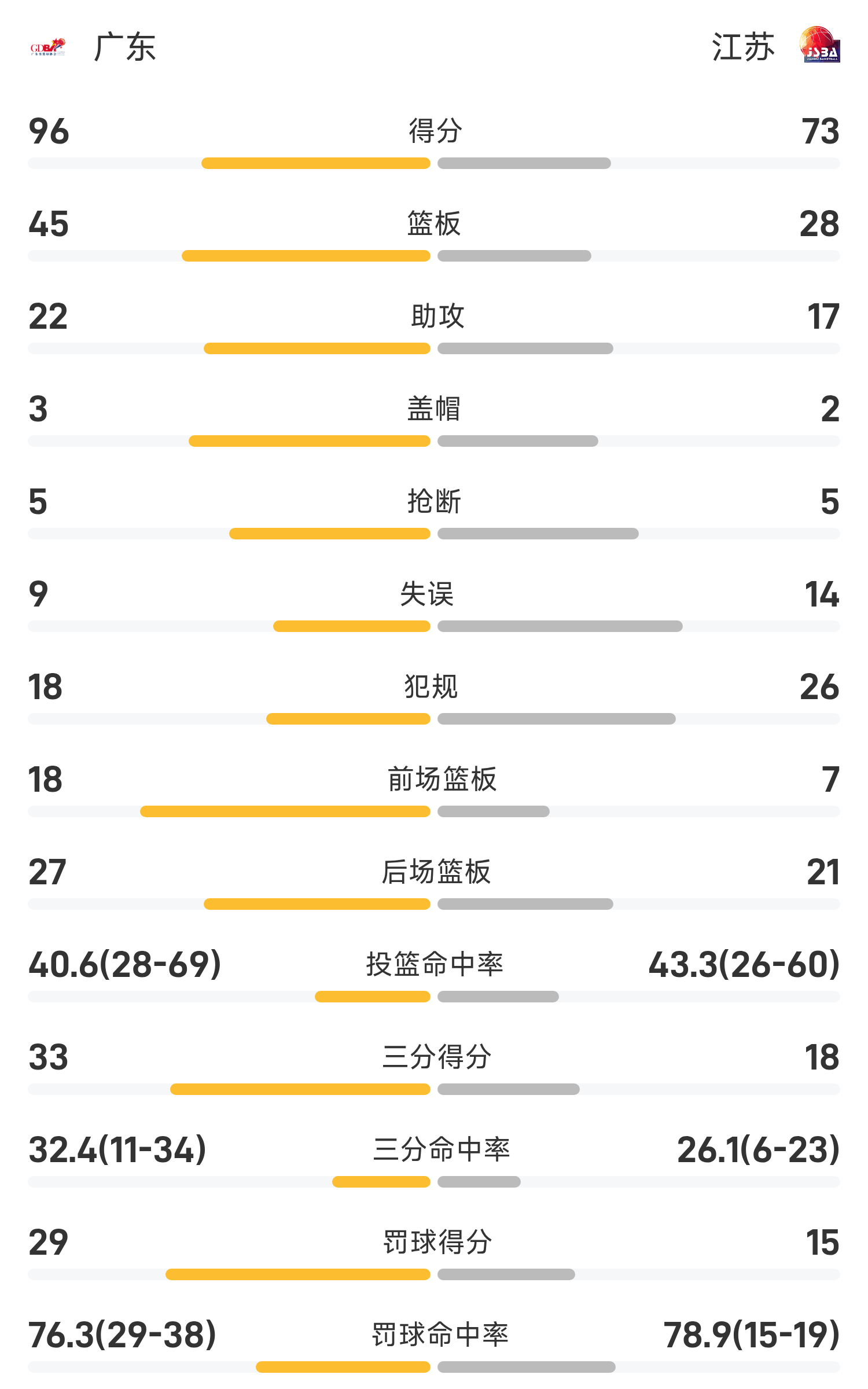 Отчет о мужском баскетбольном матче Национальных игр: Сюй Цзе набрал 29 очков, Гуандун отступил и обыграл Цзянсу со счетом 96-73