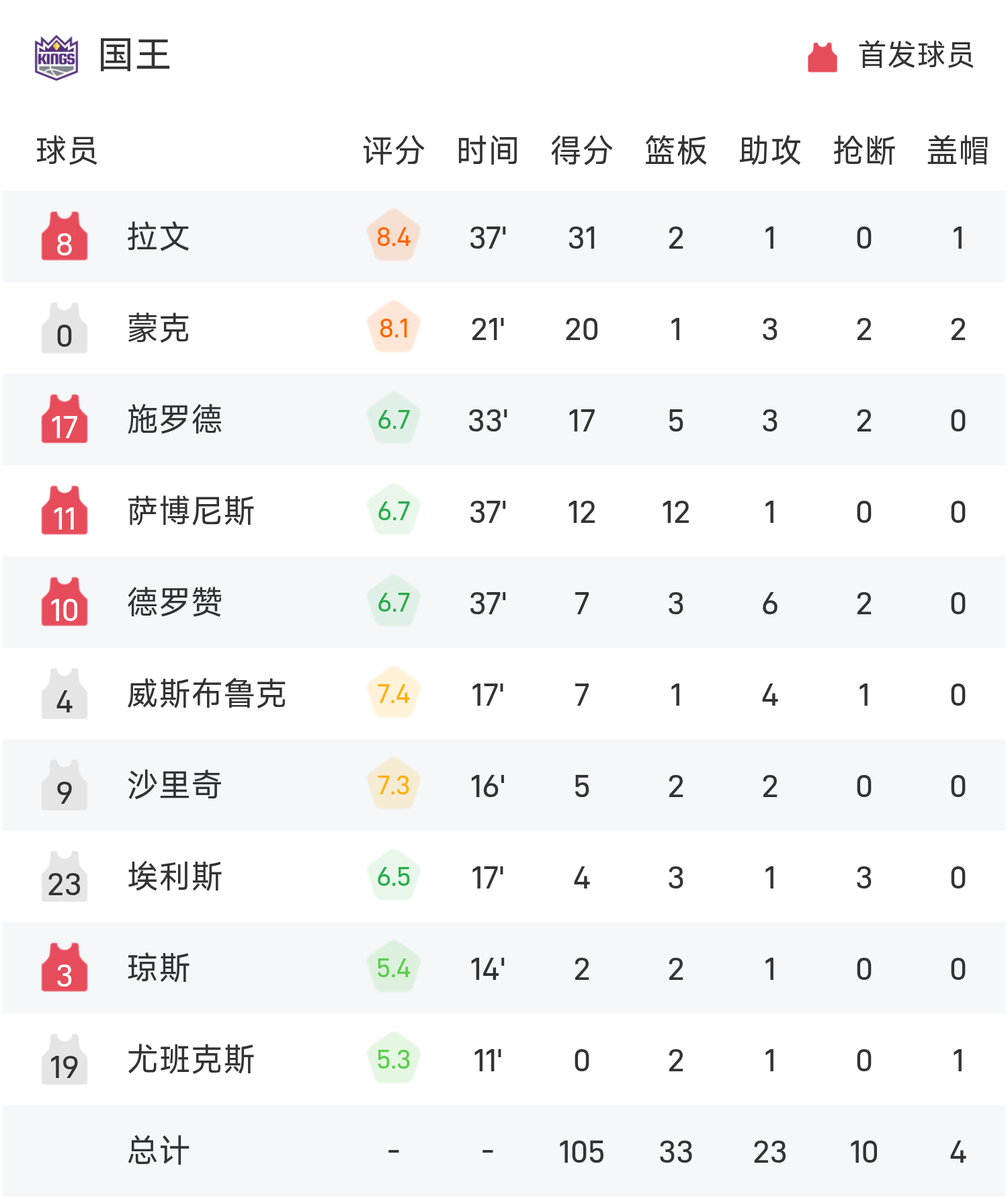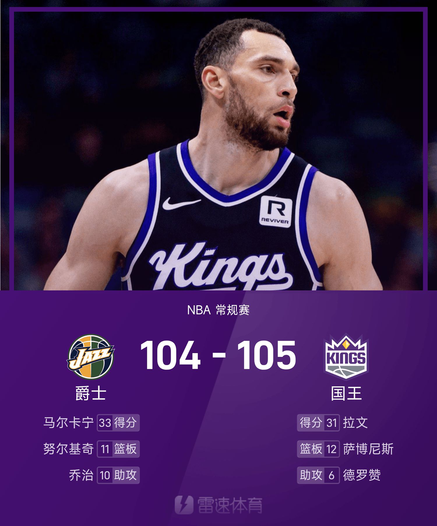 Отчет НБА: ЛаВин набрал 31 очко, "Кингз" с небольшим перевесом обыграли "Джаз" со счетом 105-104