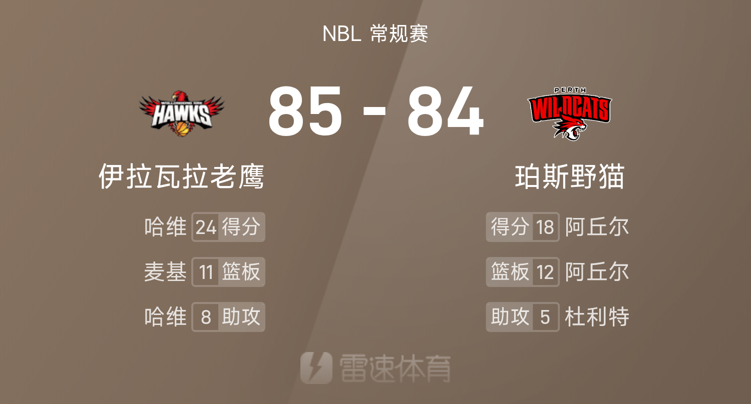 6686 Sports Новости от 25 октября В регулярном сезоне НБЛ 25/26 «Перт Уайлдкэтс» встретились с «Иллаварра Иглз». В конце игры «Перт Уайлдкэтс» проиграли «Иллаварра Иглз» со счетом 84–85. Харви набрал рекордные для игры 24 очка, 5 подборов и 8 передач, что привело «Иллаварра Хокс» к победе.